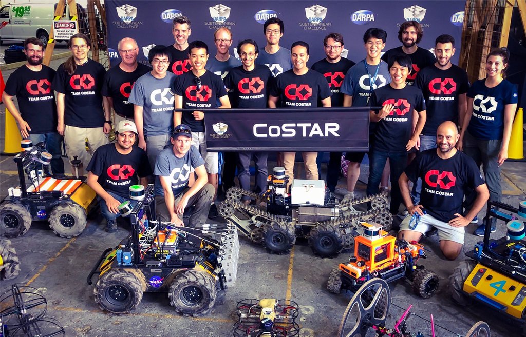 TEAM CoSTAR [Collaborative SubTerranean Autonomous Resilient Robots] is a collaboration between NASA’s JPL, MIT, Caltech, KAIST, LTU, and several industry partners (see below). TEAM CoSTAR with more than 60 key members aims at revolutionizing how we operate in the underground domains and subsurface voids for both terrestrial and planetary applications.