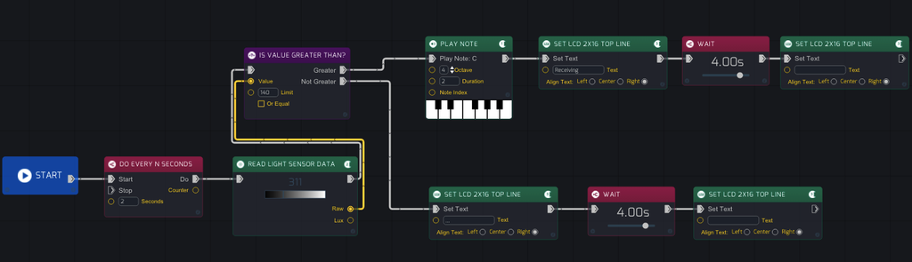 Test the detection code and the threshold for triggering the receiver. Revise the code to be certain that the signal is received above the baseline of light in the classroom only.