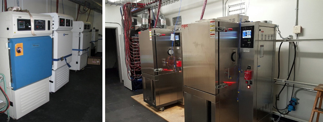 - 21 thermal test chambers, for evaluation of test cells from -80°C to +200°C