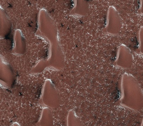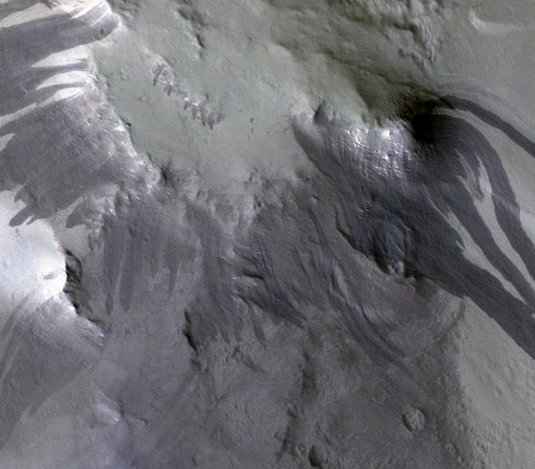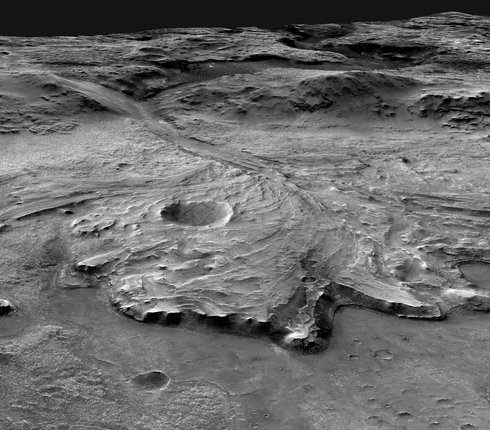 This image, acquired by NASA's Mars Reconnaissance Orbiter on Sept. 16, 2013, shows Roddy Crater on Mars, home to several large alluvial fans, which formed as water moved sediment from the mountainous crater rim and deposited it onto the flatter crater floor. Alluvial fans are found on Earth, Mars, and even Saturn's moon, Titan.