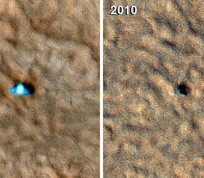 The image was taken at 51 minutes past midnight local solar time during the slow sunrise that followed a 75 minute "night." The skylight in the image is light scattered off atmospheric dust particles and ice crystals.