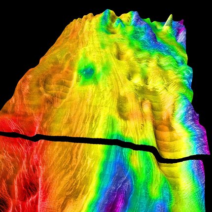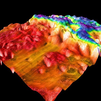 This Magellan image mosaic shows the largest (275 kilometers in diameter [170 miles]) impact crater known to exist on Venus at this point in the Magellan mission. The crater is located north of Aphrodite Terra and east of Eistla Regio at latitude 12.5 degrees north and longitude 57.4 degrees east, and was imaged during Magellan orbit 804 on November 12, 1990. The Magellan science team has proposed to name this crater Mead, after Margaret Mead, the American Anthropologist (1901- 1978). All Magellan-based names of features on Venus are, of course, only proposed until final approval is given by the International Astronomical Union-Commission on Planetary Nomenclature. Mead is classified as a multi-ring crater with its innermost, concentric scarp being interpreted as the rim of the original crater cavity. No inner peak-ring of mountain massifs is observed on Mead. The presence of hummocky, radar-bright crater ejecta crossing the radar-dark floor terrace and adjacent outer rim scarp suggests that the floor terrace is probably a giant rotated block that is concentric to, but lies outside of, the original crater cavity. The flat, somewhat brighter inner floor of Mead is interpreted to result from considerable infilling of the original crater cavity by impact melt and/or by volcanic lavas. To the southeast of the crater rim, emplacement of hummocky ejecta appears to have been impeded by the topography of preexisting ridges, thus suggesting a very low ground-hugging mode of deposition for this material. Radar illumination on this and all other Magellan image products is from the left to the right in the scene.