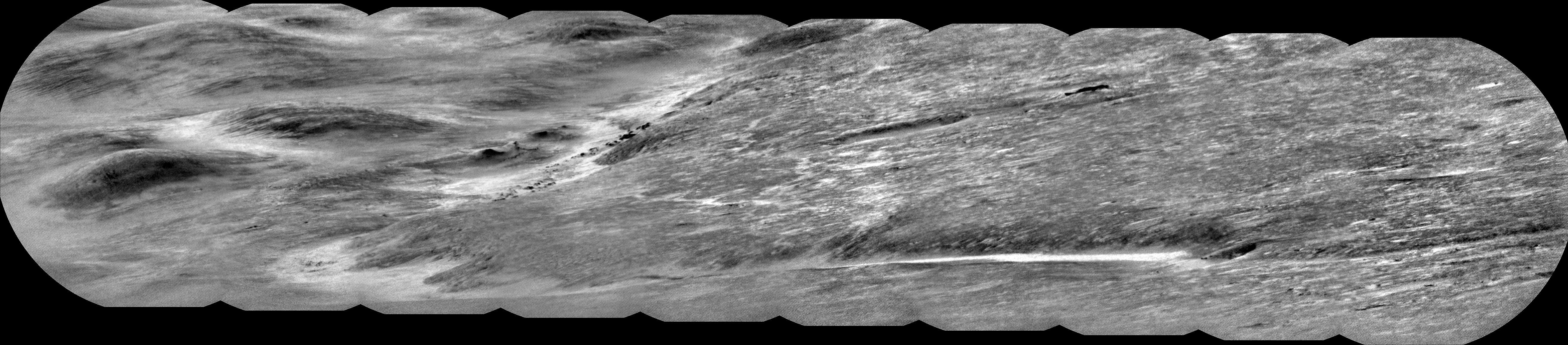 The dark features scattered just left of center within the channel are rocky outcrops. While Curiosity has taken pictures of Peace Vallis in the past, this is the first time details like these have been seen within it. Water and sediment are believed to have flowed down Peace Vallis into Gale Crater billions of years ago, creating a fan of sediment across the crater floor. Studying the crater's watery past is part of Curiosity's overall mission to understand where and how well the ancient Martian landscape could have supported microbial life, if any ever formed there.