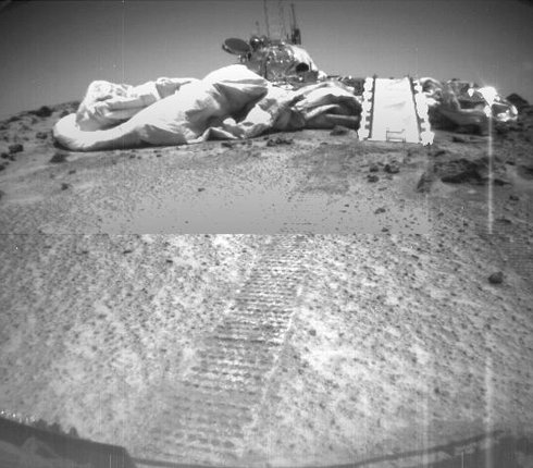 Photojournal note: Sojourner spent 83 days of a planned seven-day mission exploring the Martian terrain, acquiring images, and taking chemical, atmospheric and other measurements. The final data transmission received from Pathfinder was at 10:23 UTC on September 27, 1997. Although mission managers tried to restore full communications during the following five months, the successful mission was terminated on March 10, 1998.